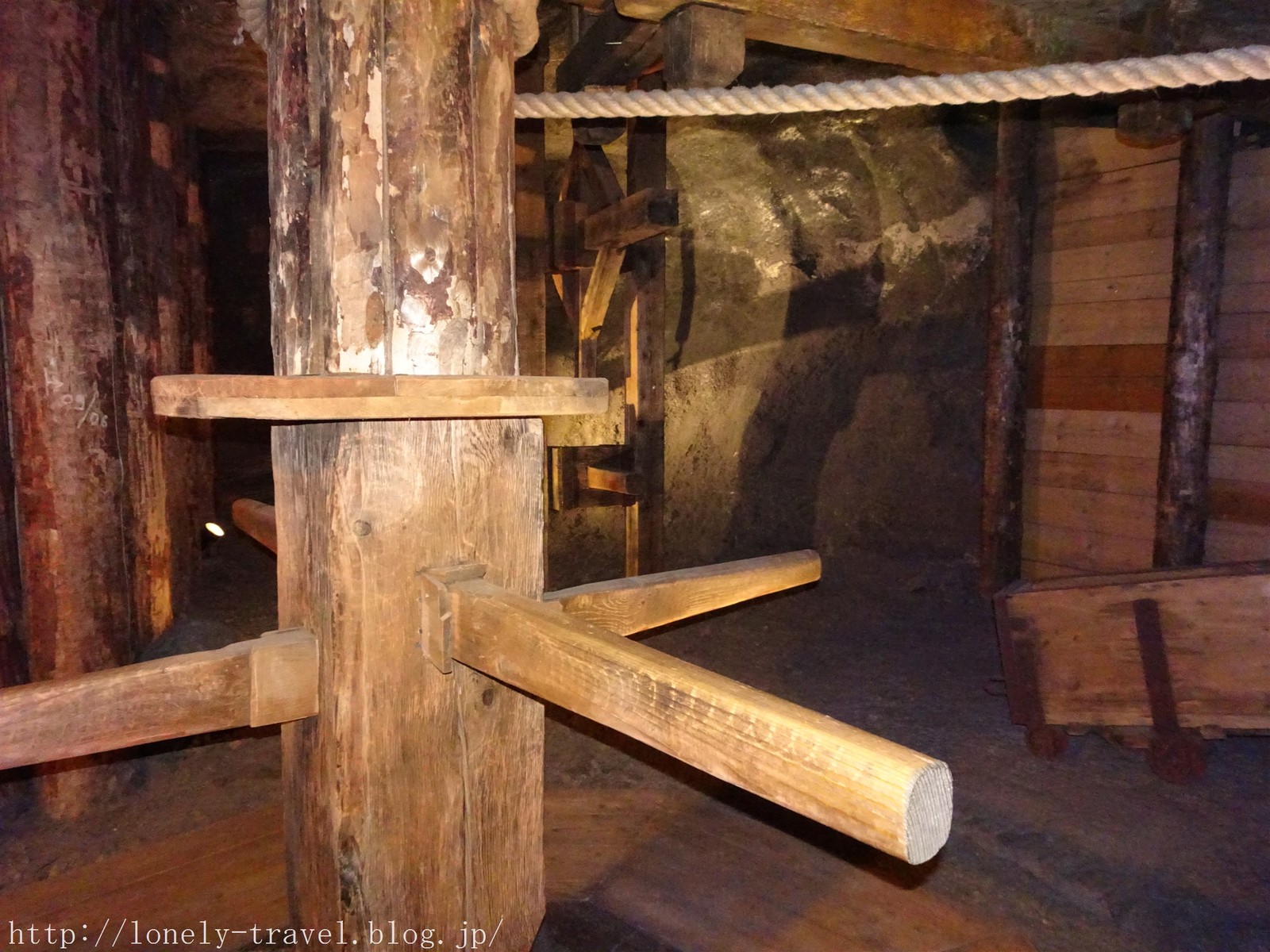 凄い丸太の数ですが、あんま岩塩坑っぽい雰囲気じゃないですね。